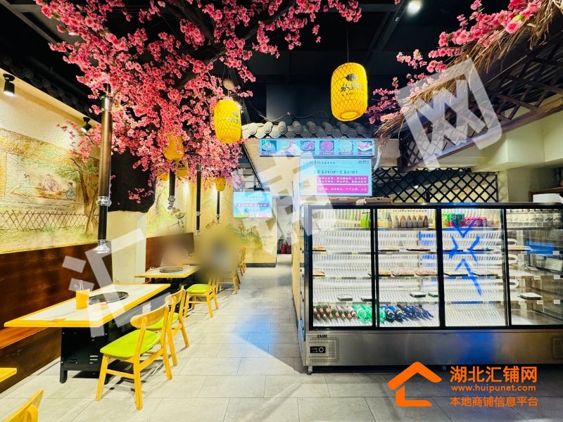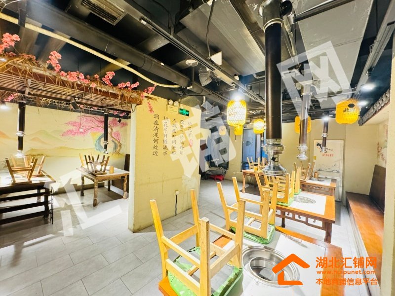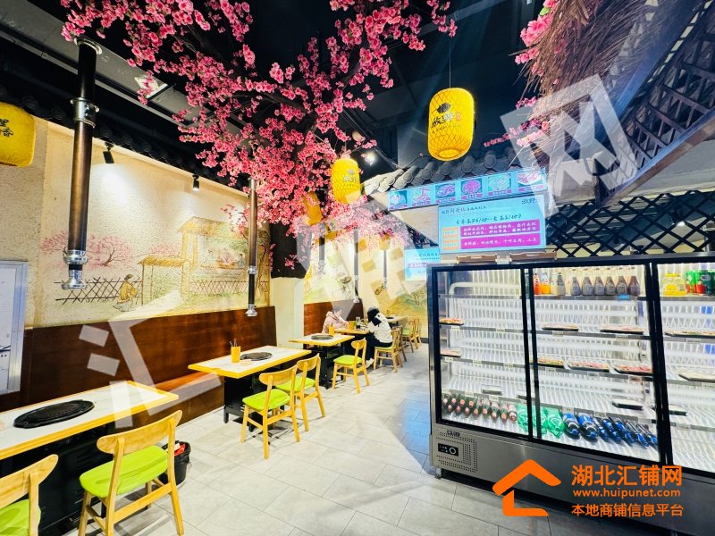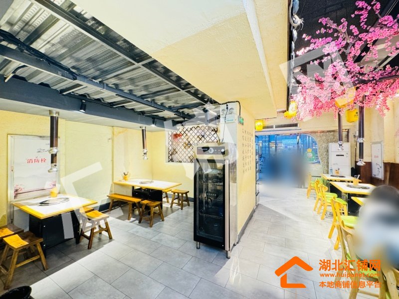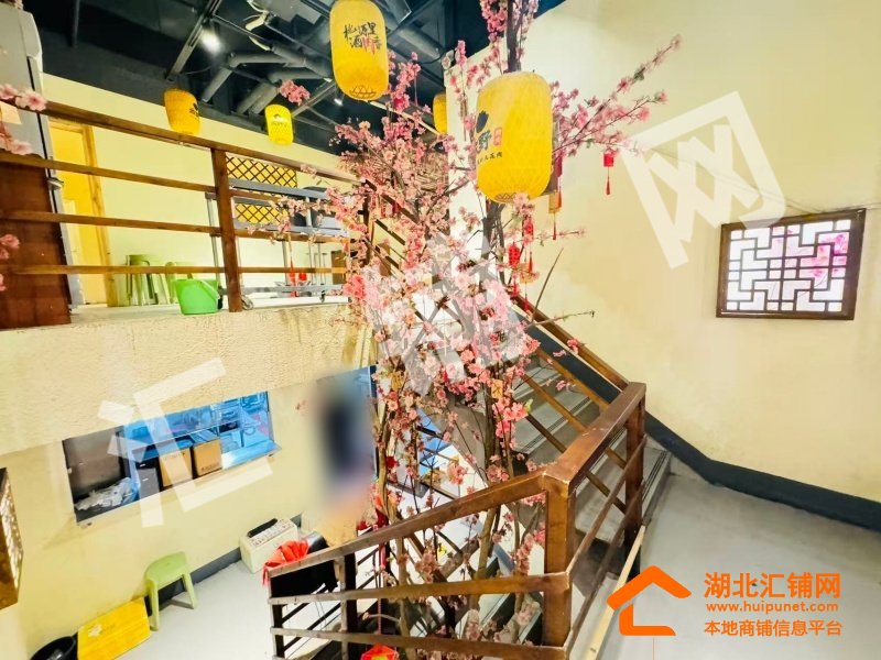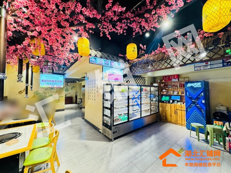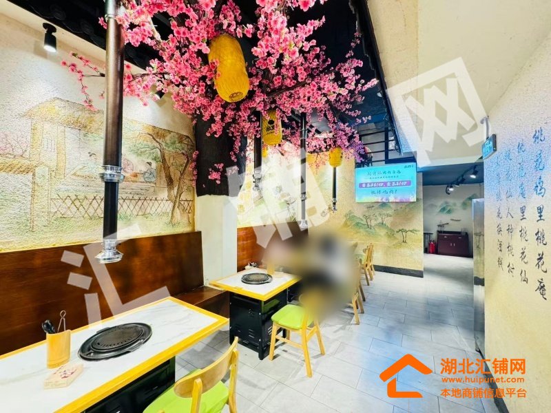 店铺概况:总面积200㎡,租金14000元/月,店内醒目大气,内部格局方正,采光通透,上下水已通,桃花源主题烤肉店采用上下两层布局,一层为开放式散客区,以桃花枝、水墨壁画与中式灯笼营造沉浸式古风氛围,二层则规划出一间独立包厢,兼顾私密性与雅致格调。整体融合新中式美学与现代餐饮功能,通过桃花元素、原木家具与暖光营造温馨雅致的桃源用餐体验。